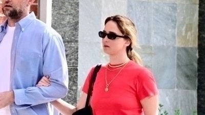 Today, Lawrence and her husband Cooke Maroney, were spotted walking arm-in-arm in New York City. The actor, who has a well-documented love of tomato red (transcending baseball caps, jelly flats, and handbags alike) opted for a brightly colored T-shirt, lending a pop of color to an otherwise-neutral look. On the bottom, Lawrence wore a pair of flowing white trousers with black leather slides.