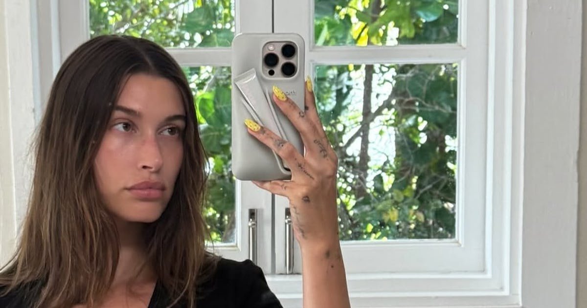 While the glazed donut manicure is probably Bieber’s most viral nail moment, she’s not afraid to experiment with color. This summer, she debuted a bright yellow, almond-shaped manicure topped off with small polka dots.