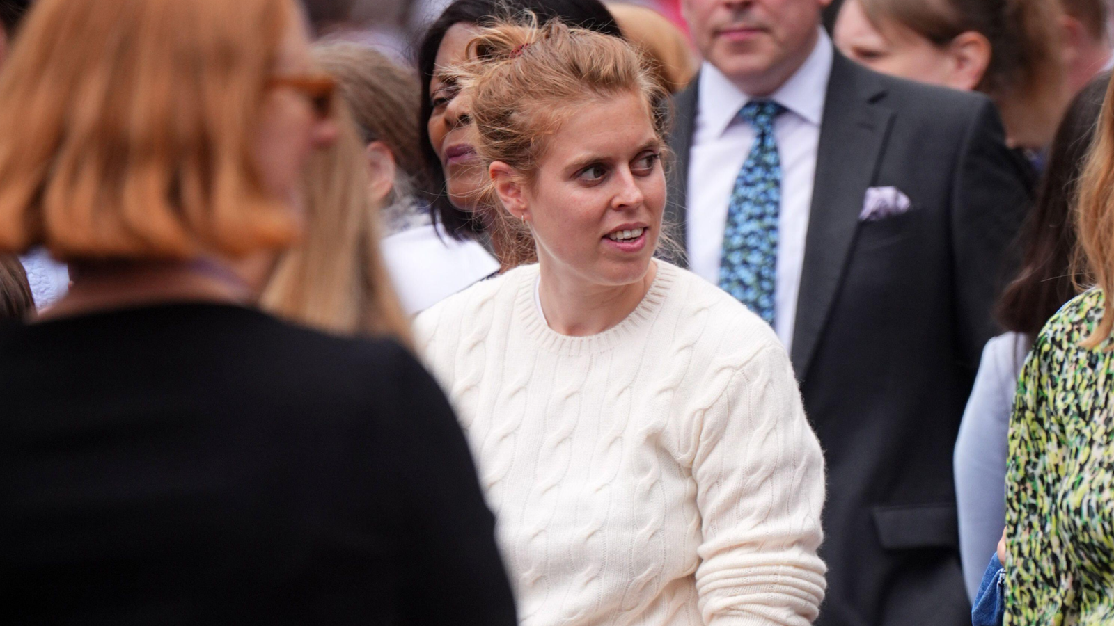 Beatrice and husband Edoardo “Edo” Mapelli Mozzi brought their 6-month-old daughter, Athena, out in public for the first time for the event, lining up along The Mall in London leading to Buckingham Palace. Their 3-year-old daughter, Sienna, and Mapelli Mozzi’s 9-year-old son from a previous relationship, Christopher, joined the crew, with both Beatrice and Edo blending into the crowd in casual outfits.