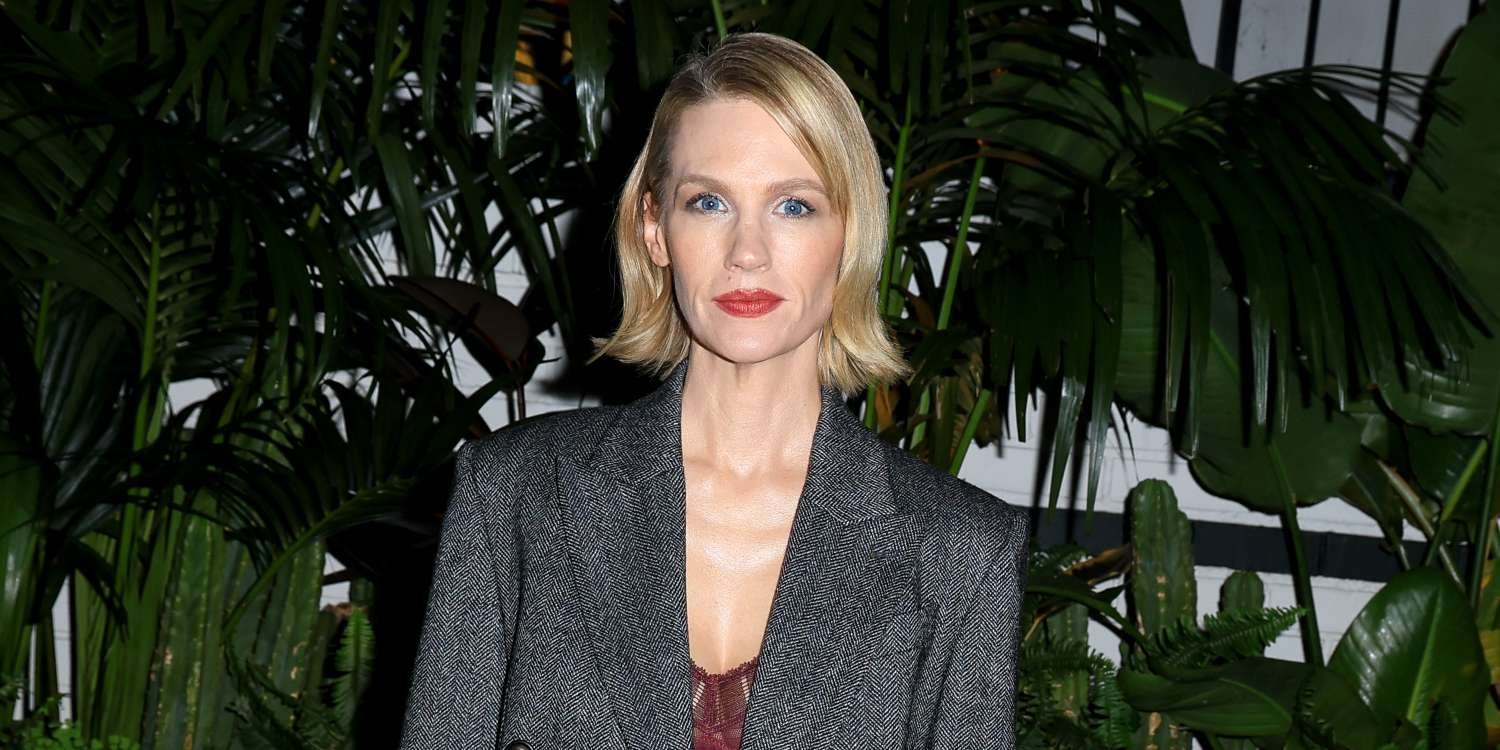 Jones, who famously played Betty Draper opposite Jon Hamm’s Don Draper, appeared to take inspiration from her Mad Men era for her latest red carpet appearance. Wearing her platinum blonde hair in a retro, flipped-out style with a black headband, the actress embodied ‘60s glam in a sleeveless boatneck black dress, which featured subtle pleats in its A-line skirt. A pair of black patent leather sandal heels, a rose lipstick, and small gold hoops finished off Jones’s effortlessly elegant look.