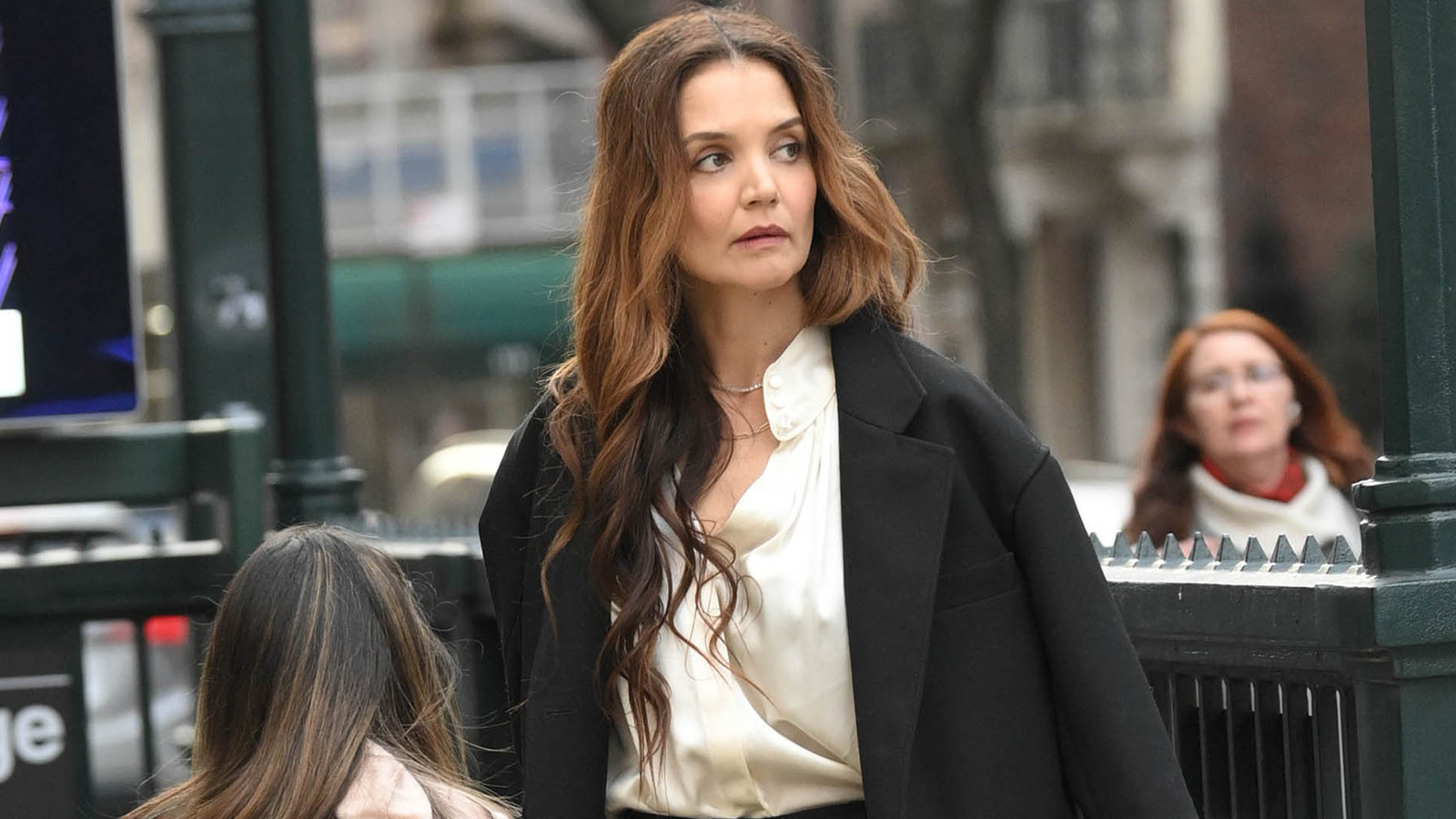 Holmes hasn’t publicly worn culottes since Aug. 2018 (that I know of). While out in Times Square seven years ago, the A-lister pulled off a similarly pleated pair, complete with a cinched drop waist. On top, she wore a baby pink button-down. Ruffles along the neckline and cuffs juxtaposed the clean crimps along her culottes. Celine’s Belt Bag, a now archival model, finished Holmes’s outfit.