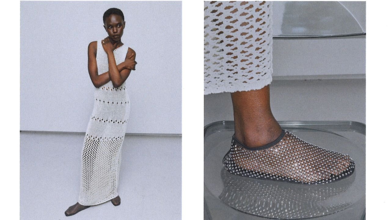 However, Alaïa and The Row are no longer the only brands offering these gauzy, open-knit, and studded footwear favorites. There are new mesh styles on the high street and beyond, with options ranging from gingham ballerinas at Staud to sock-like barely-there crochet slippers from Toteme. For added texture (and a hint of everyday preciousness), look at the crochet flats on the market now. There are also floral appliques at Proenza Schouler, woven and high-end mesh horsebit flats from Gucci. For the evenings, Christopher Esber’s cage-like silhouette would look alluring complemented by fringe skirts or organza tops.