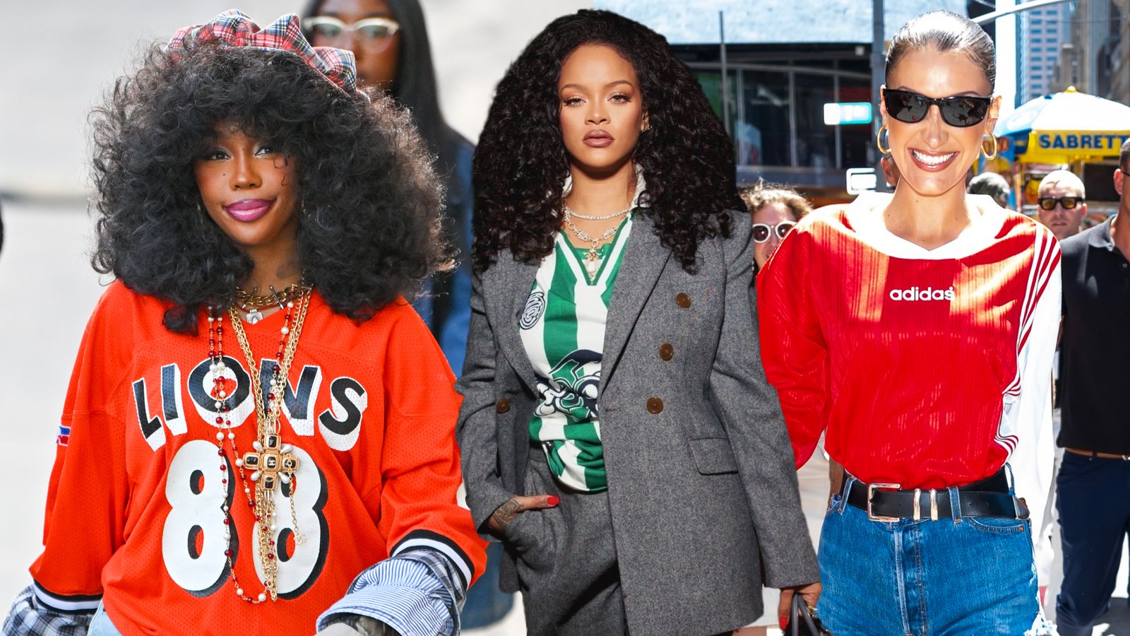 Whether or not you’ve attended a football game recently (I haven’t since ’06), take it from SZA: A single jersey can give the illusion you have season tickets. With Rihanna, Bella Hadid, Jennifer Lopez, and more stars co-signing the trend, it’s clear sports jerseys are no longer just a “fan thing.” They’re a cool-girl calling card that could even make me get onto the field.