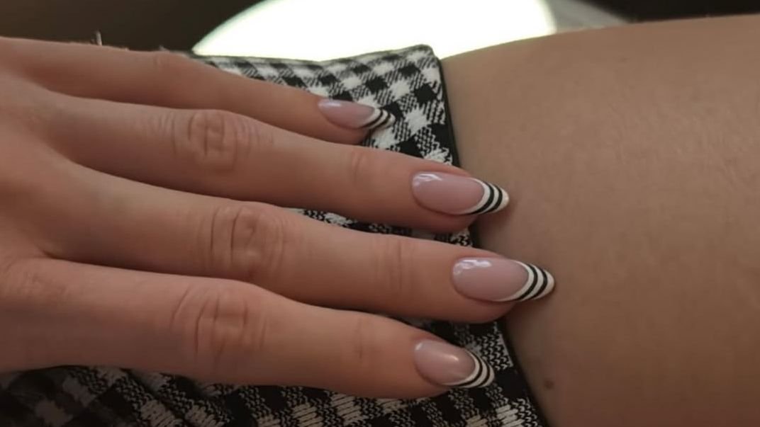 If black and white is a little too basic (or if you’re not ready to say goodbye to summer neons just yet), Dua Lipa recently wore a striped French nail design on vacation. On Instagram, the singer shared photos of herself on a getaway with fiancé Callum Turner. Her manicure featured a nude base with bright tips in shades like green, pink, and orange. Across each tip are dainty stripes to give the mani some extra oomph.