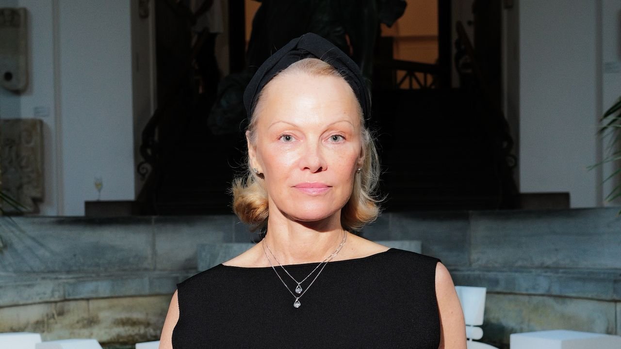 Sitting in Copenhagen’s grandest hotels, Pamela Anderson is still every bit the Pamela Anderson of today: makeup-free, icy blonde, casually dressed in oversized button-down shirt. Her only accessories are diamond studs and a matching pendant necklace. But I’m mostly struck by her openness and deep interest in our conversation—she really is the soft-spoken charmer we’ve gotten to know over the past few years. (Case in point: When I walk into the room, she’s just finished putting together a Pandora charm bracelet as a gift for her mother’s birthday. “I was having a little crafty moment over here,” she says.)