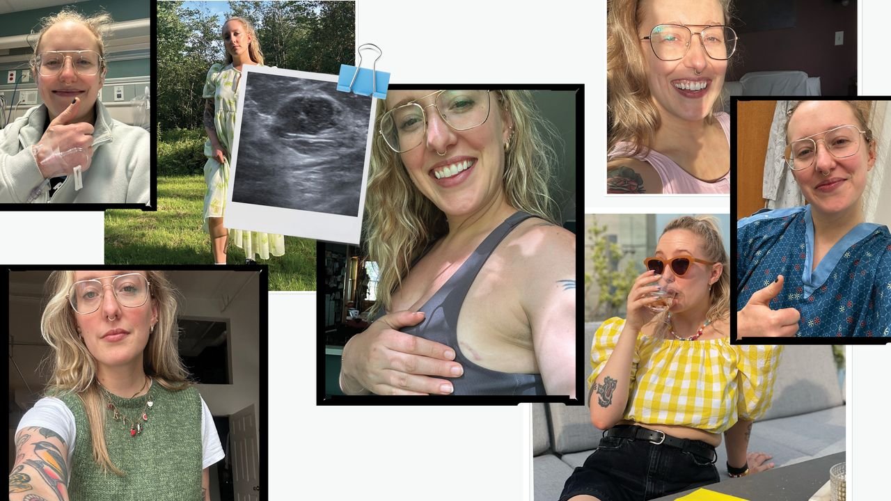 In 2019, I told my ob-gyn that I felt like my largest lump was getting bigger, so she ordered a mammogram, followed by the diagnostic sonogram that typically has to be ordered for people with dense breasts who feel a suspicious bump. Breast density is measured on a scale of A to D; Hans tells me that about 10% of women fall into the “A” category (mostly fatty tissue aka not dense), 10% into “D” (extremely dense), and the rest somewhere in the “B” and “C” range. The less dense your breasts are, the easier it is for a doctor to spot a mass sitting among your tissue: On X-ray imagery (including mammograms), tumors look white, while fatty tissue is gray. The tissue inside extremely dense breasts, like mine, are lighter in color, making those tumors harder to spot unless you’re really looking for it via a targeted sonogram. Simple cysts and fibroadenomas show up as black holes amongst the lighter tissue, which I have to say look terrifying, despite their benign nature.