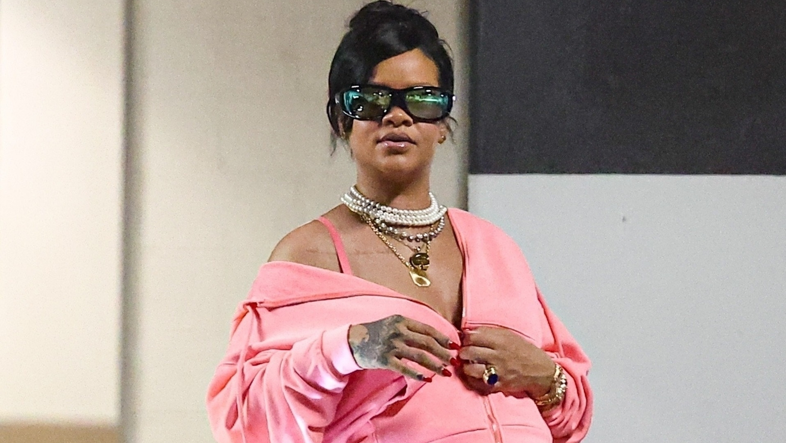 On August 11, Rihanna’s maternity-wear streak returned to Beverly Hills, reportedly to stock up on baby essentials once again. For a late-night shopping trip, the pregnant star styled summer-to-fall staples, starting with Timberlands in the classic light brown shade. Their rubber lug soles just barely peeked out from underneath her oversize dark-wash jeans. From there, the Grammy-winner’s baby bump was on full display alongside a cropped bubblegum pink hoodie. It was slightly unzipped to reveal her matching bra, presumably with Savage x Fenty tags.