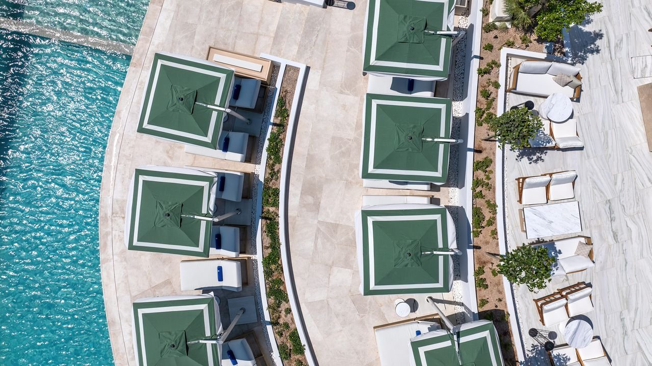 If you’re in the mood for some self-guided exploration, on the other hand, the resort’s entrance is right across the street from a charming scooter rental agency called Santoride Rent-a-Moto. The owner is a spirited Greek woman named KiKi whose cropped and colorful haircut reminds me of the singer P!nk. (I had a feeling her music must have reached the shores of Santorini, and further research on P!nk’s Greek chart numbers supports the fact she was a likely inspiration for the ’do.) While there are multiple means of transportation for getting around Santorini, including taxi services and a public bus system, motor-bikes came most highly recommended by Sandblu staff and locals. Depending on your preferred mode of transportation—ATV, scooter, buggy—a rental at Santoride will run you anywhere from €40 to €70 a day if you include fuel and insurance. KiKi will even provide a map where she circles her recommendations for the best beaches, restaurants, and hidden gems on the island before sending you off.