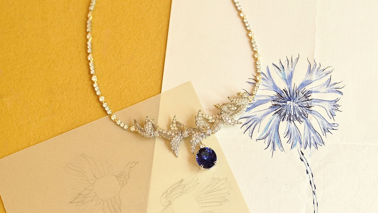 The original Bird on a Rock design, inspired by a yellow cockatoo that Tiffany’s legendary jewelry designer Jean Schlumberger discovered near his second home in Guadalupe, was created in 1965 as a brooch, with Bunny Mellon purchasing one of the first pieces, which featured a cabochon lapis lazuli with yellow and white diamonds. Verdeille’s reinvention expands that single piece to two distinct flocks of bejeweled imaginings: Two of them, in the high jewelry category, are centered around, respectively, tanzanites (a necklace, a bracelet, and earrings) and turquoise (a statement necklace with a diamond bird grasping strands of cabochon turquoise, a pendant, a brooch, and a ring), with both stones having a long history with the house.