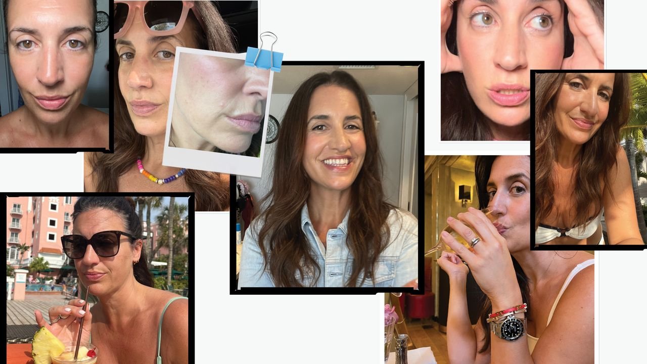 And then almost four years ago, when I was 45, I moved from London to Florida, where it always feels like cocktail o’clock, and that quiet habit turned into something louder. I was also experiencing perimenopause at the time, which didn’t help my drinking. Or my skin for that matter. My tolerance to alcohol was shrinking while my anxiety and sleeplessness were growing. And my skin was suffering too. I noticed sagging creeping into my jawline, lines on my upper lip, worsening pigmentation, more prominent dark circles.