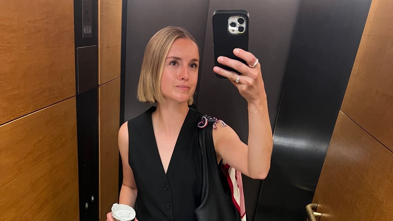 British Vogue Shopping producer, Mia Portet, wearing the Uniqlo Curve jeans.