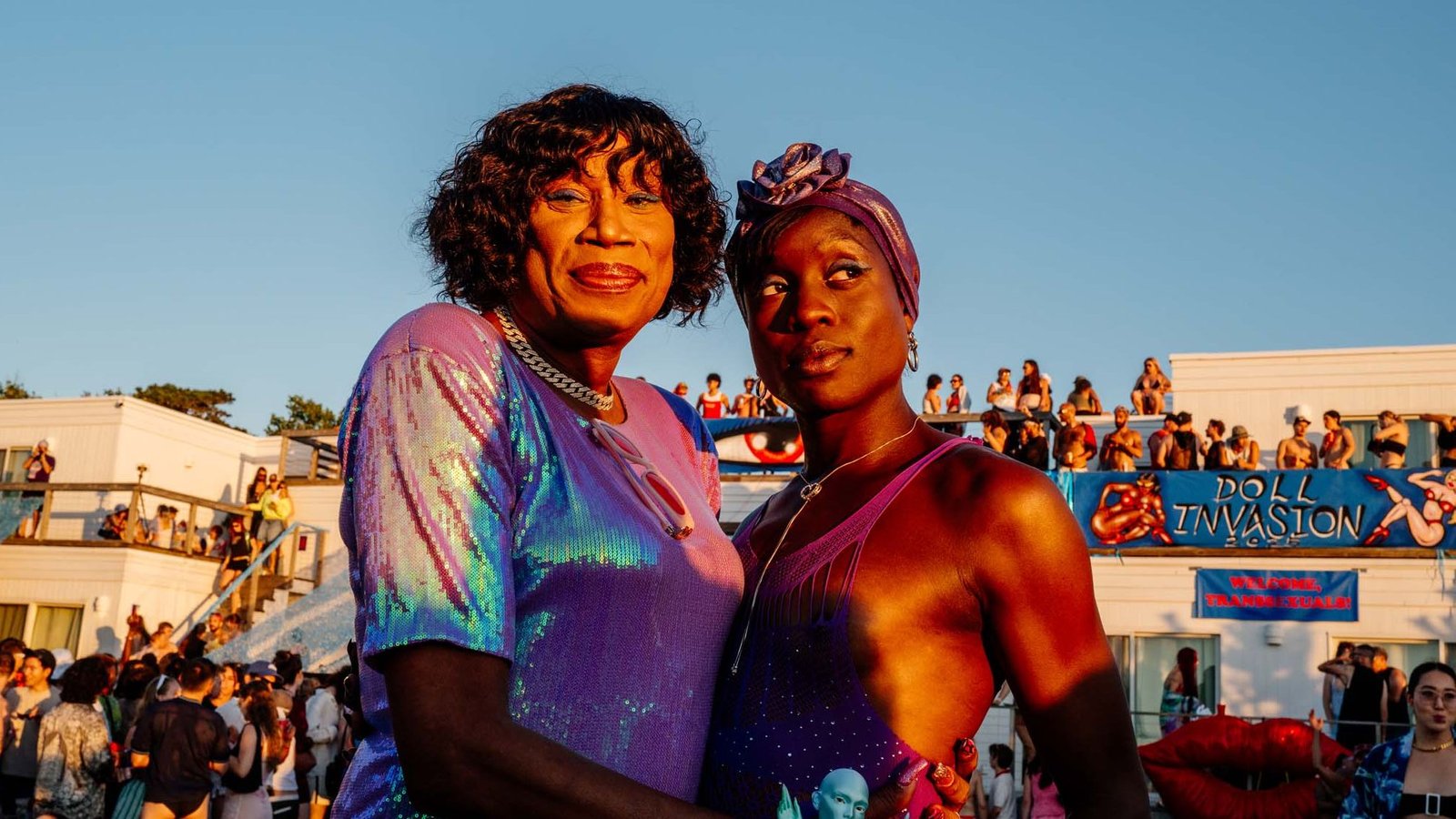 Trans advocates have long worked toward having an equitable presence in the Pines specifically, which has developed a reputation for muscular cisgender gay men and a not-so-subtle whiff of exclusion. “Invasion is the key word here,” says fashion designer Willie Norris, Doll Invasion’s creative director. While there’s no doubting Fire Island’s beauty, Norris adds, for many it’s been rendered inaccessible, in terms of both cost and culture. This is something the Doll Invasion team is working to change. (The theme of this year’s event is “Wet Hot Transexual Summer.”) As the ferry docks, a hot pink sign shouts, “Welcome, Dolls!”