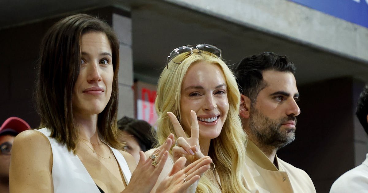 Hot on the heels of her Freakier Friday whistle-stop global promo tour, Lohan was back in top form — even inspiring memes with her joyful selfie taking in the stands. The actor was as fashionable as ever in a spaghetti strap silk dress adorned with an inky red flower print with Chanel gladiator sandals and a timeless camel coat.