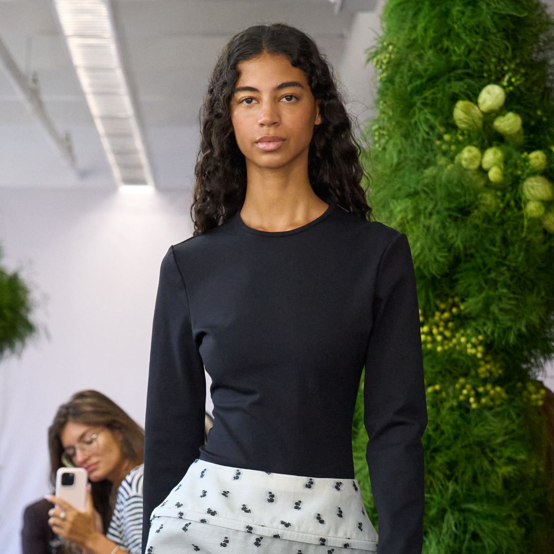 Throughout Khaite’s runway, polka dots, well, dotted the runway looks in refreshing and unexpected ways. Sometimes, it was the focal point, as in Jenner’s ballgown skirt. In other looks, it arrived as a dash of contrast beneath an open leather jacket and a denim midi skirt. From outfit to outfit, the dots played off the tougher or more sumptuous pieces typically defining creative director Catherine Holstein’s Khaite collections (like her sumptuous leather jackets) to achieve the perfect balance.