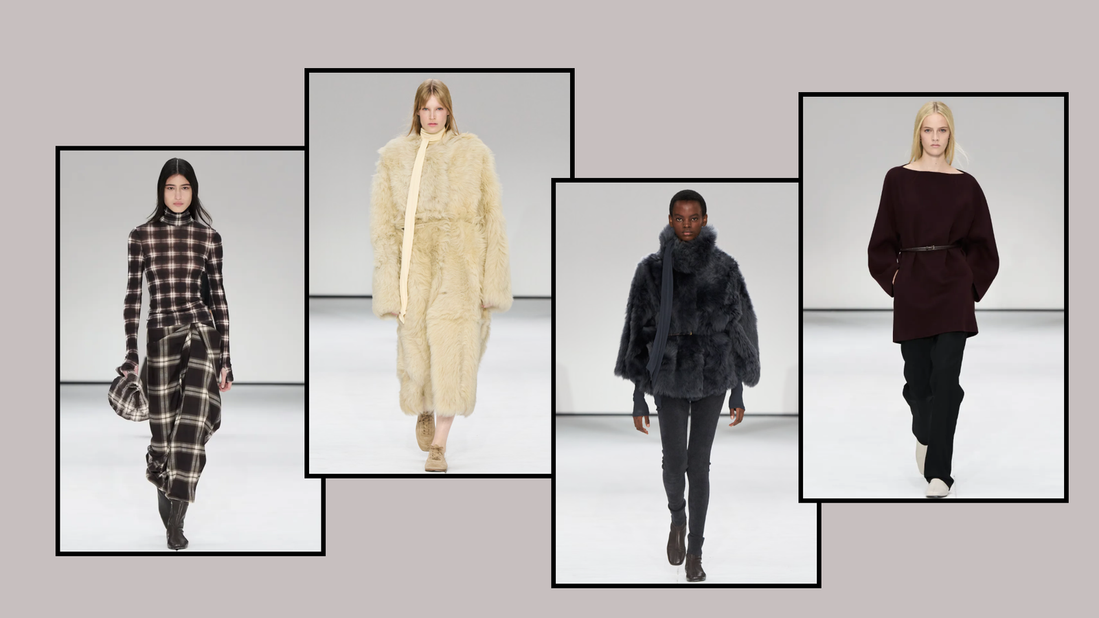 When there was a break from the monochrome, it still felt well within the minimalist capsule wardrobe that Cos had created. One look from early on the show combined a skin-tight turtleneck and a wrap skirt in two different plaid patterns. Regardless, both were crafted in the same maroon and tan color palette.