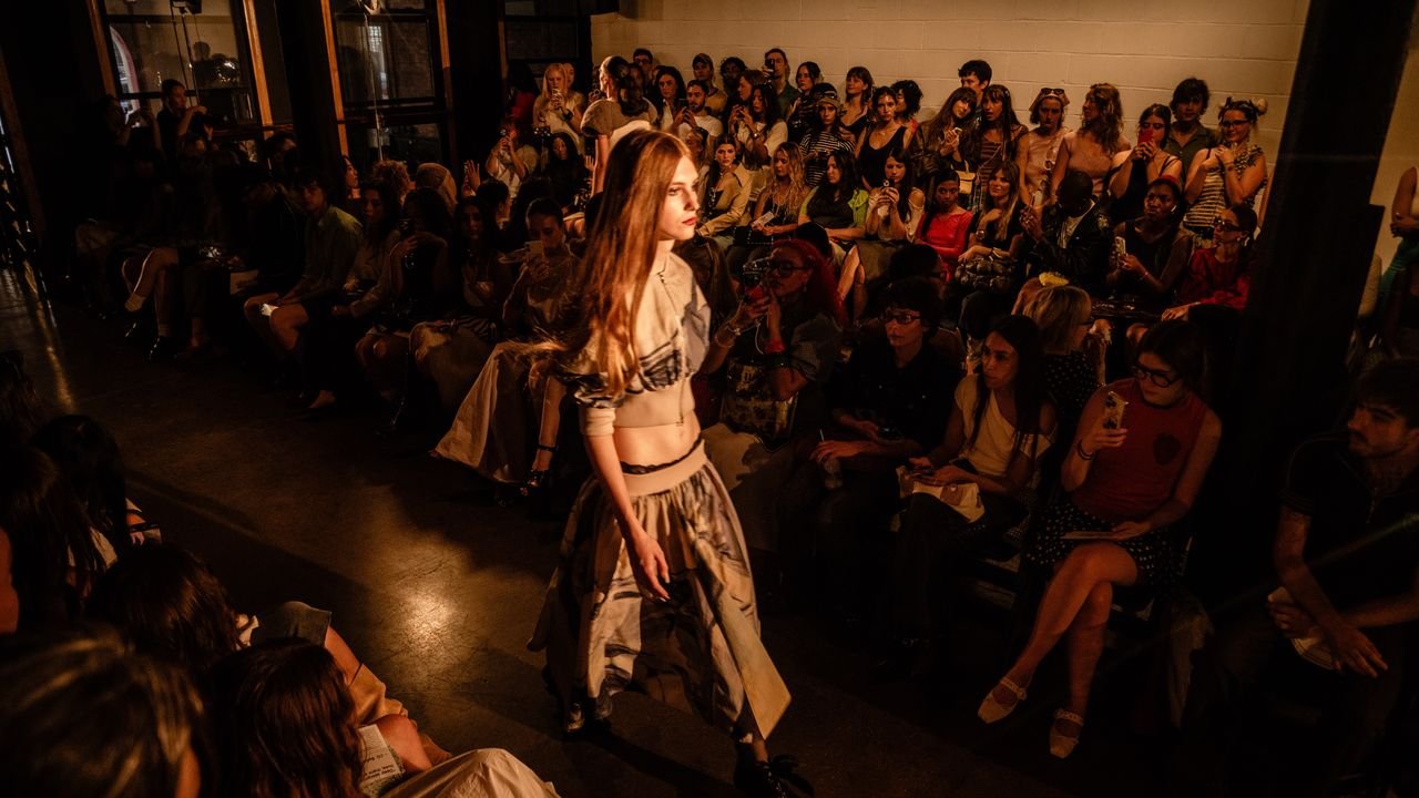 The pair are finalists for the 2025 CFDA/Vogue Fashion Fund, and this season was their second on the official show schedule. Gordon and Gibbons took to DCTV, an old firehouse downtown that now operates as a community media center. Right outside its fire hydrant red garage gate, the pair left the carcass of a burnt car—the kind of New York sighting you wouldn’t blink twice in passing were it not Fashion Week—which started steaming as the gate rolled up and the show got underway.