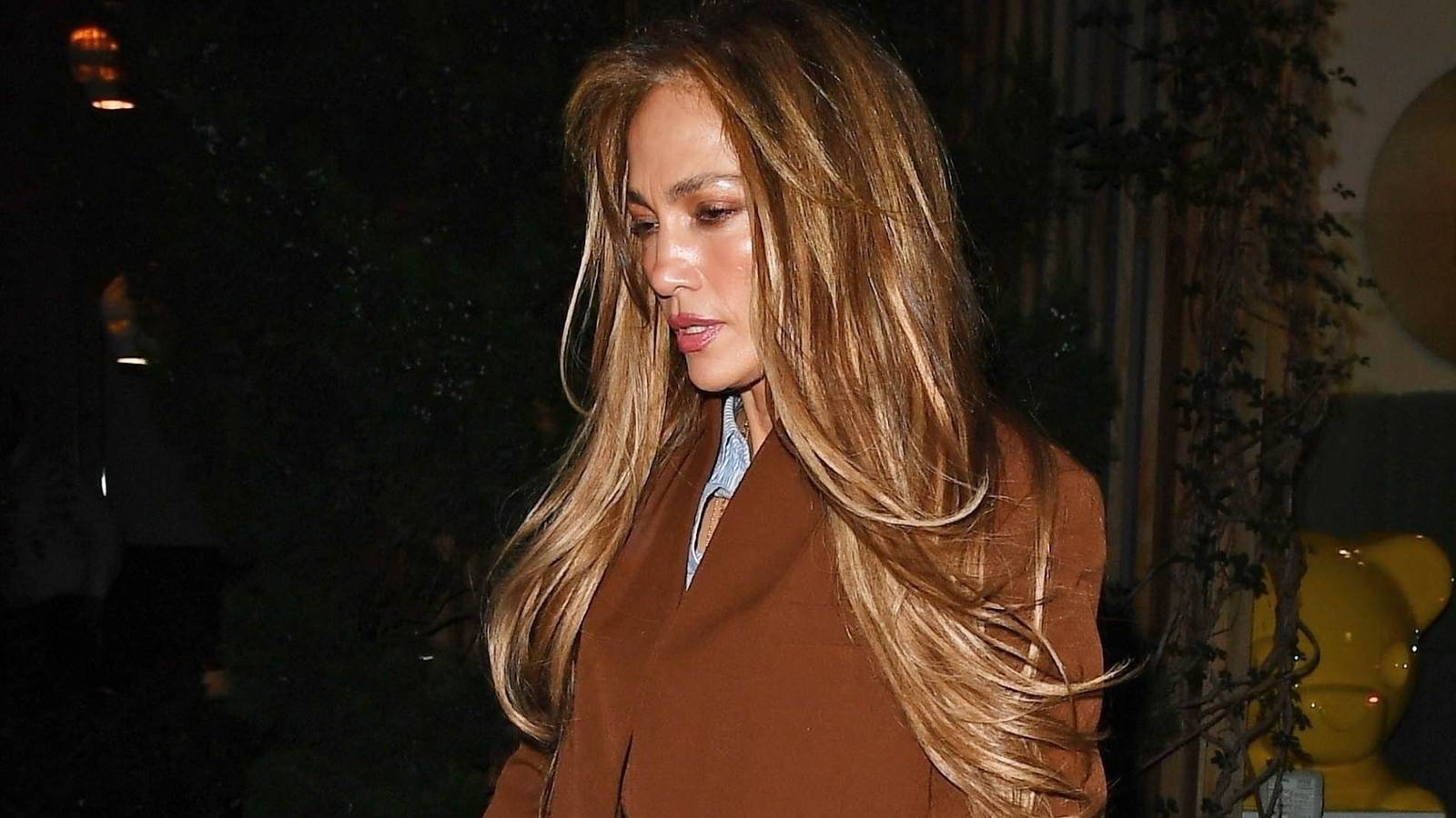 After a hair appointment on September 16, J.Lo debuted her fresh blow-out in black and brown separates. The color combination, though unexpected after her summer color story, felt so on-brand for autumn in New York. To start, she layered a blue button-down underneath a plunging brown sweater. It was more caramel than chocolate, one of fall’s rising neutral shades.